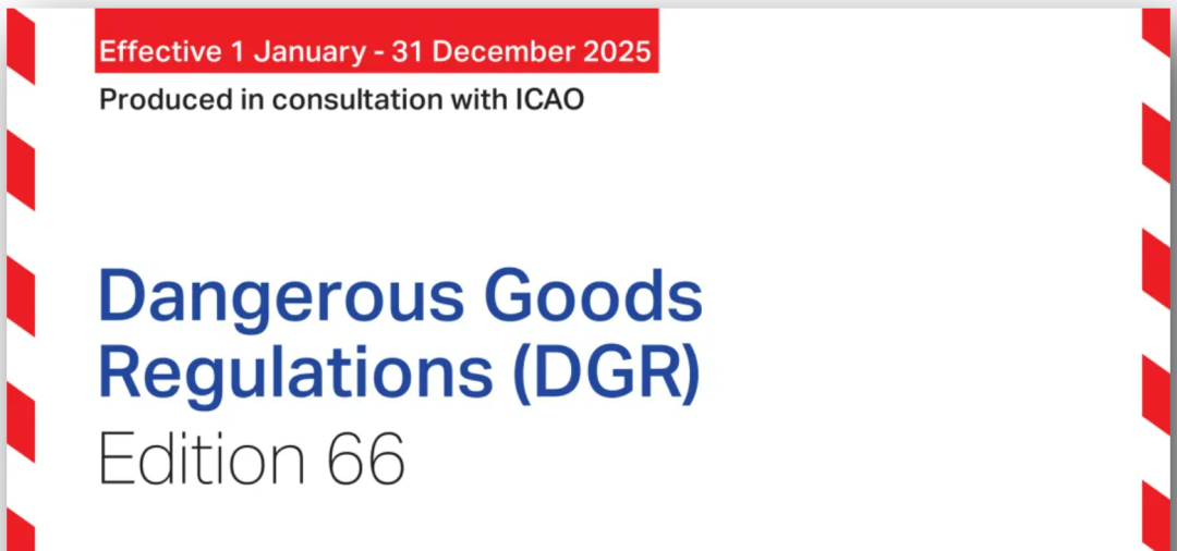 “IATA(International Air Transport Association 国际航空运输协会)发布了66版DGR(Dangerous Goods Regulations 危险物品手册),从2025年1月1日起生效。